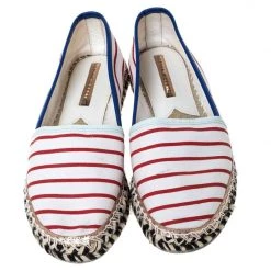 These designer flats from the brand of Sophia Webster are a must-have in your wardrobe. Embrace your unique side when you wear these espadrille flats They have been crafted from multicolored striped canvas and come with 2 cm platforms, canvas lining and rubber soles.