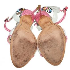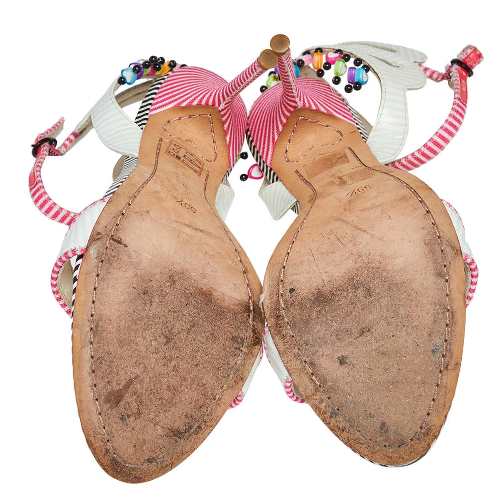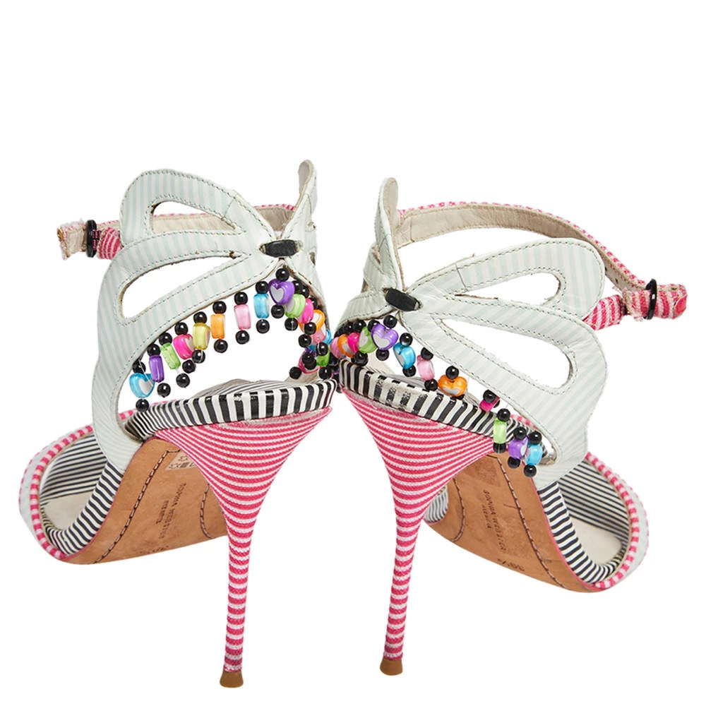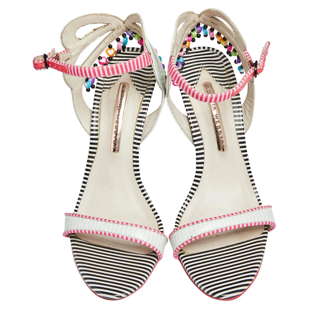 Sophia Webster shoes are known for their unique designs that emanate the label’s feminine verve and immaculate craftsmanship that makes their creations last season after season. Crafted from striped leather, the sandals are adorned with butterfly-shaped counters, open-toes, and high heels.