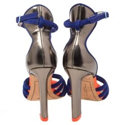 These sandals by Sophia Webster are a striking creation that will add color and fun to your wardrobe. They have been crafted from suede and leather. They have open toes, strappy uppers, ankle straps, extended counters and 9.5 cm heels.