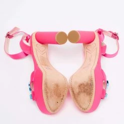 This pair of sandals by Sophia Webster delivers sophistication. The shoes come made from satin in a classy shade of neon pink and are designed with open toes, platforms, and block heels.
