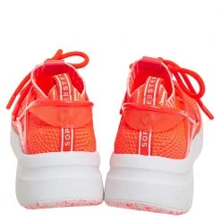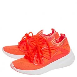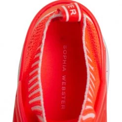 Elevate your style quotient with these trendy and chic Fly By sneakers from Sophia Webster! These low-top sneakers are crafted from orange cotton knit fabric and styled with round toes, lace-ups on the vamps, and the signature butterfly wing detailing on the sides. They are complete with fabric-lined comfortable insoles and durable rubber soles.