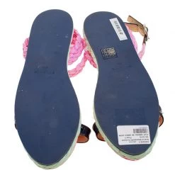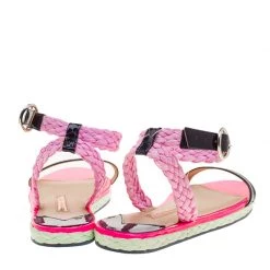 Add a pop of colour and a stylish summer chic style to your day time looks with this Sophia Webster espadrille sandals. Constructed in pink and black patent leather along with pink straw braided ankle strap, it also features a silver tone buckle closure for added chic style.