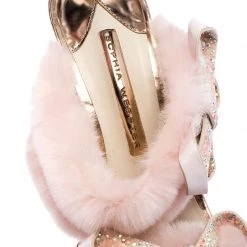 These Sophia Webster sandals are feminine and exude style. Crafted from faux fur and leather, they come in pink. They are further beautified with embellished bows, buckled ankle straps, 11.5 cm heels, leather lining, and soles.