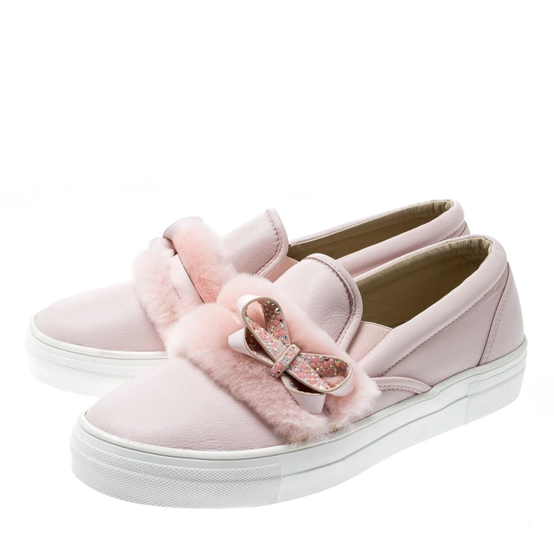 Sophia Webster’s iconic Bella style has been re-created into easy slip-on sneakers for the women who like everything high fashion. They are crafted in pink leather and feature fur trims and embellished bow details on the uppers. The pair is beautifully complete with comfortable insoles and sturdy soles.