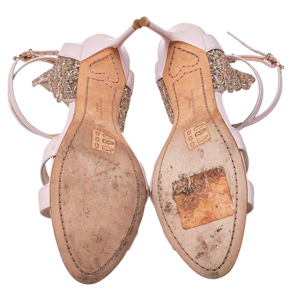 When it comes to stylish and modern designs, Sophia Webster tops our list! She charms us yet again with these pink sandals that are crafted from leather and feature an open-toe silhouette. They flaunt crisscrossed straps and buckled ankle straps. The heel counters are shaped to resemble that of a butterfly’s wings making the pair look amazing. Pair them with skirts or knee-length dresses for your special outings.