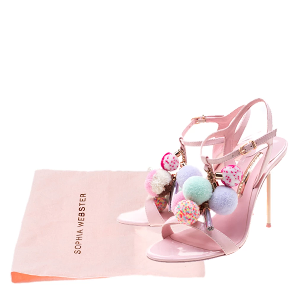 Adorable and stylish, these sandals from Sophia Webster are just perfect for the fashionable you! The pink Layla sandals are crafted from leather and feature an open toe silhouette. They flaunt a T strap design, ankle straps and faux fur pom pom accents. Leather-lined insoles and 10 cm heels complete this stunning pair.
