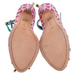 These sandals from Sophia Webster have been designed to lift your style. They are crafted from heart-printed nylon and designed to secure your feet in a fashionable way. The colourful sandals are elevated on 11 cm heels and finished with buckle closure.