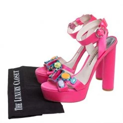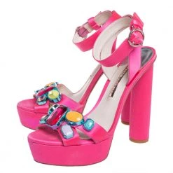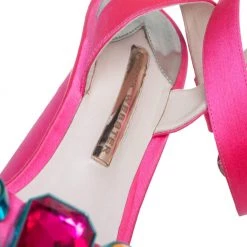 A perfect blend of color and bling, these Sophia Webster Amanda sandals are perfect for both day and nighttime party looks. Constructed in pink satin, these shoes feature multicolored stone embellished cross straps at the front along with a platform and buckled strap at the ankles for ease of wear and added glam.