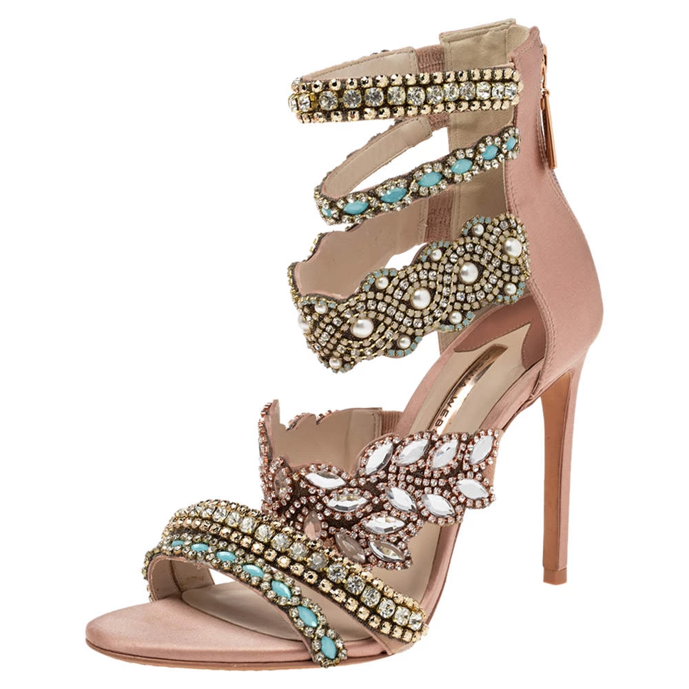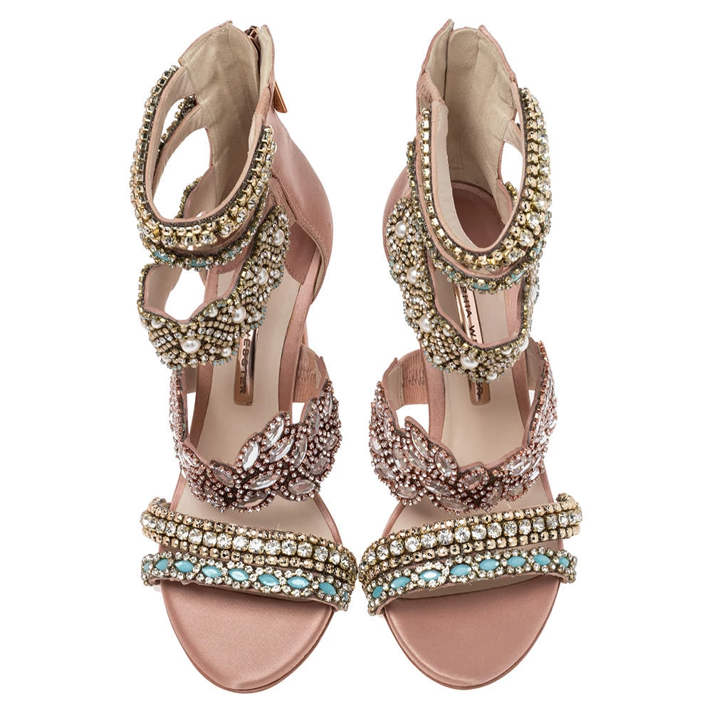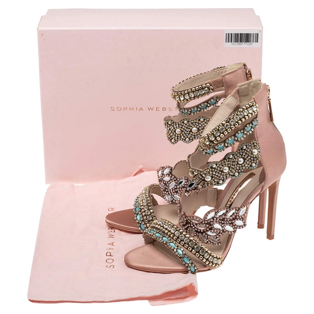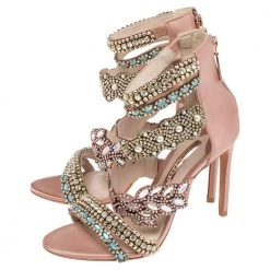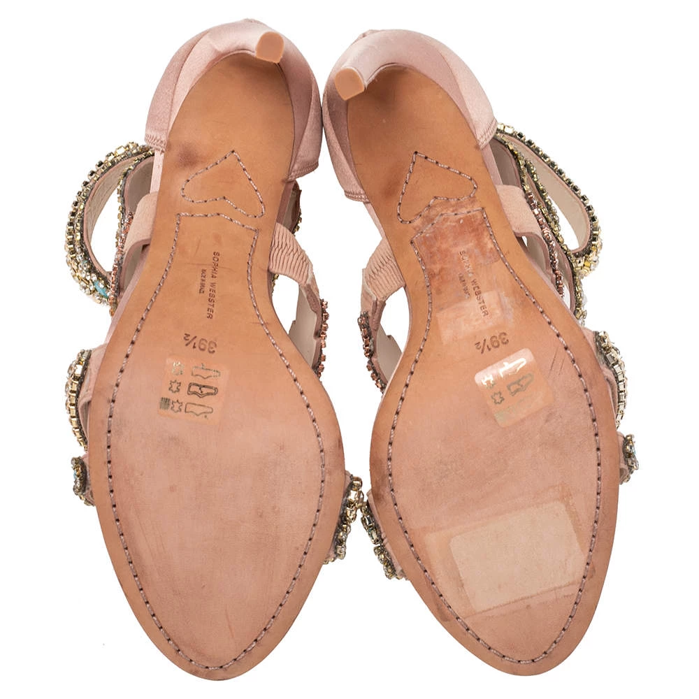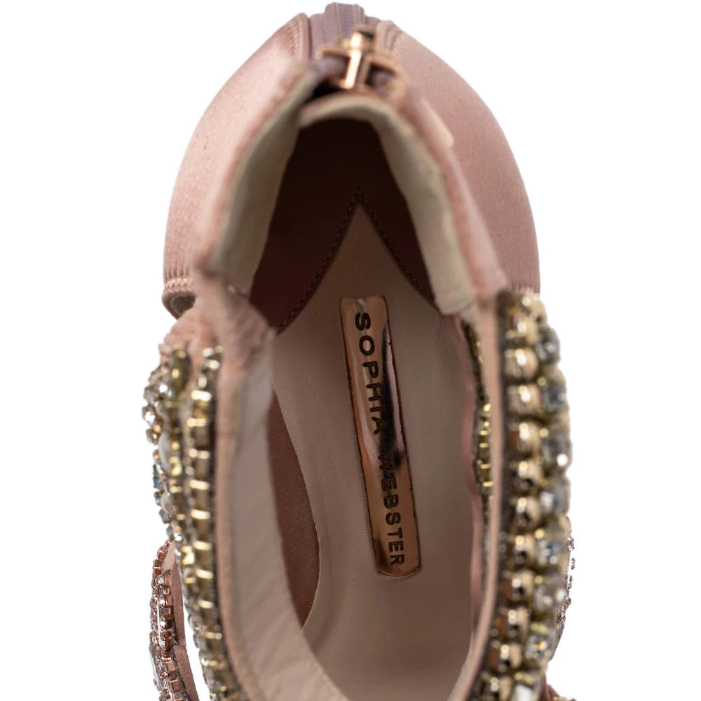 Flaunt style at its best with these beautiful Sophia Webster sandals. Accentuated with embellishments, these strappy Eden sandals are breathtakingly gorgeous. This pink creation features a satin-suede exterior and 11 cm stiletto heels. Team your favorite outfit with this pair for an outstanding look.