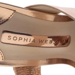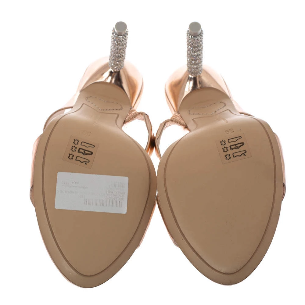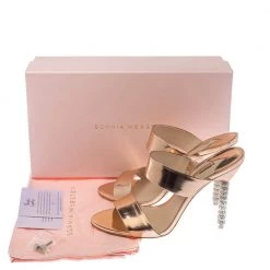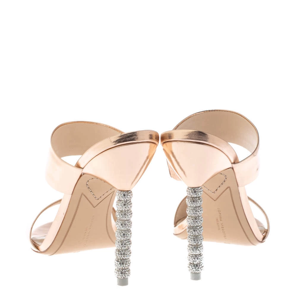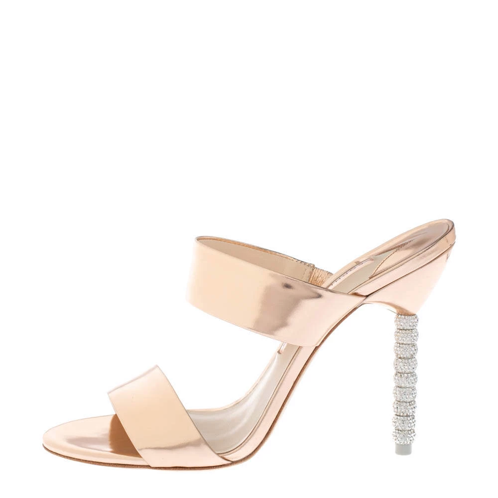 Comfort coupled with fashion creates wonders and these mules from Sophia Webster are a true example of that. These rose gold mules are crafted from foil leather and feature open toes. They flaunt dual straps across the vamps and stand tall on crystal-embellished 11 cm heels.