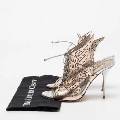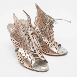 The house of Sophia Webster brings you these impressive mules that complement any evening outfit. These beautiful rose gold leather sandals feature a design of laser-cut wings, lace-ups, and slim 10 cm heels. These statement mules are lined with leather and are durable.