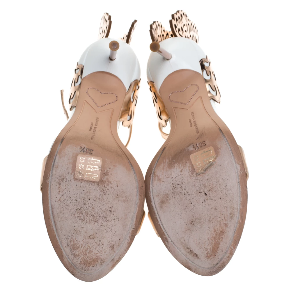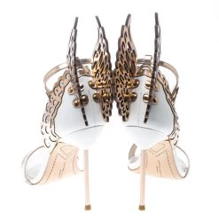 Sophia Webster has a flair for incorporating marvelling ideas with shoemaking, and maybe that’s why their designs are so coveted. These “Evangeline” sandals are simply unbelievable. They flaunt an exterior made from leather and artistically designed with a single strap and breathtaking laser-cut wings emerging from the counters above the 10.5 cm heels.