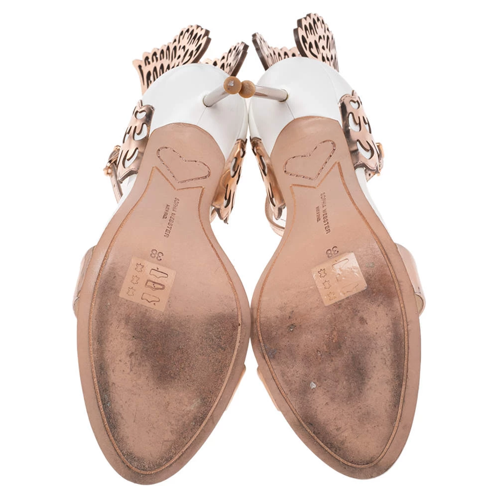 Sophia Webster has a flair for incorporating marveling ideas with shoemaking, and maybe that’s why her designs are so coveted. These “Evangeline” sandals are simply unbelievable. They flaunt an exterior made from leather and artistically designed with a single vamp strap and breathtaking laser-cut wings emerging from the counters above the 10.5 cm heels.