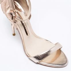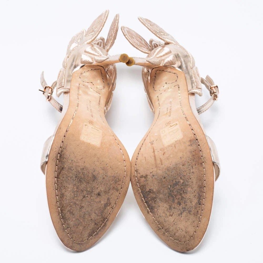 These Chiara sandals from Sophia Webster will make you look gorgeous. They are made from rose-gold leather, with embroidered Butterfly motifs elevating their beauty. These sandals showcase open toes, an ankle strap, and slim heels.