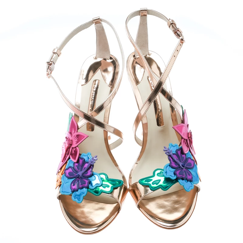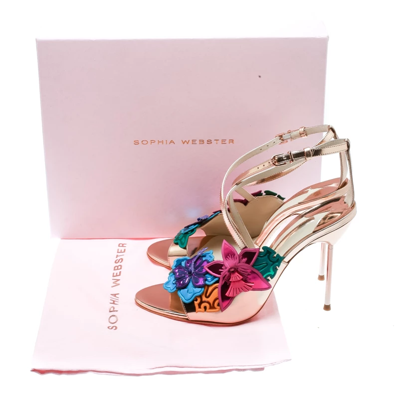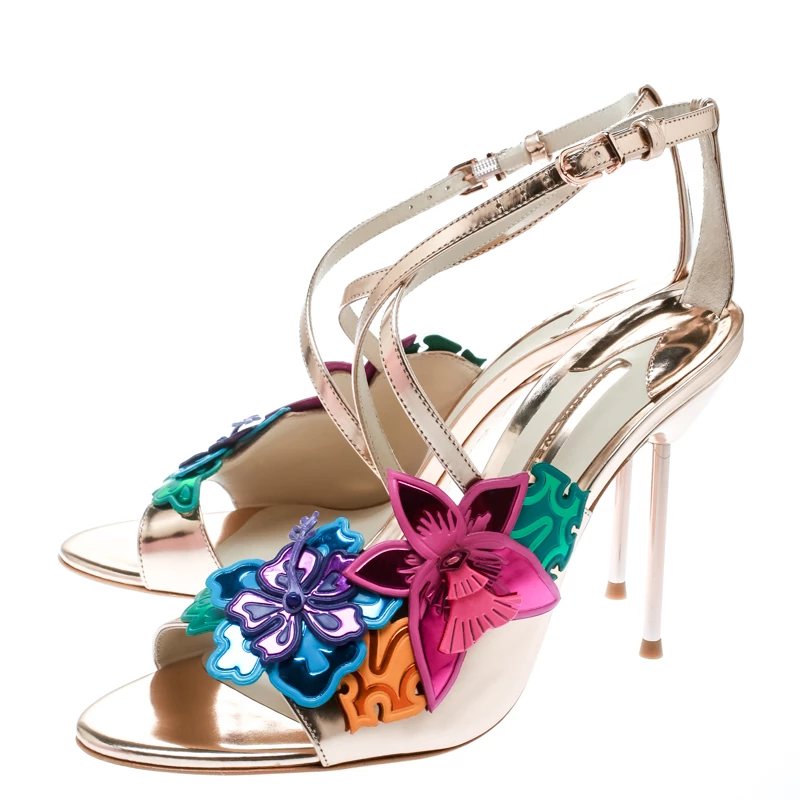 Experience the best of fashion in these sandals from the house of Sophia Webster. They are designed from patent leather and decorated with flowers singing in vibrant colours. Lined with leather, they are crafted to offer you beauty and maximum comfort.