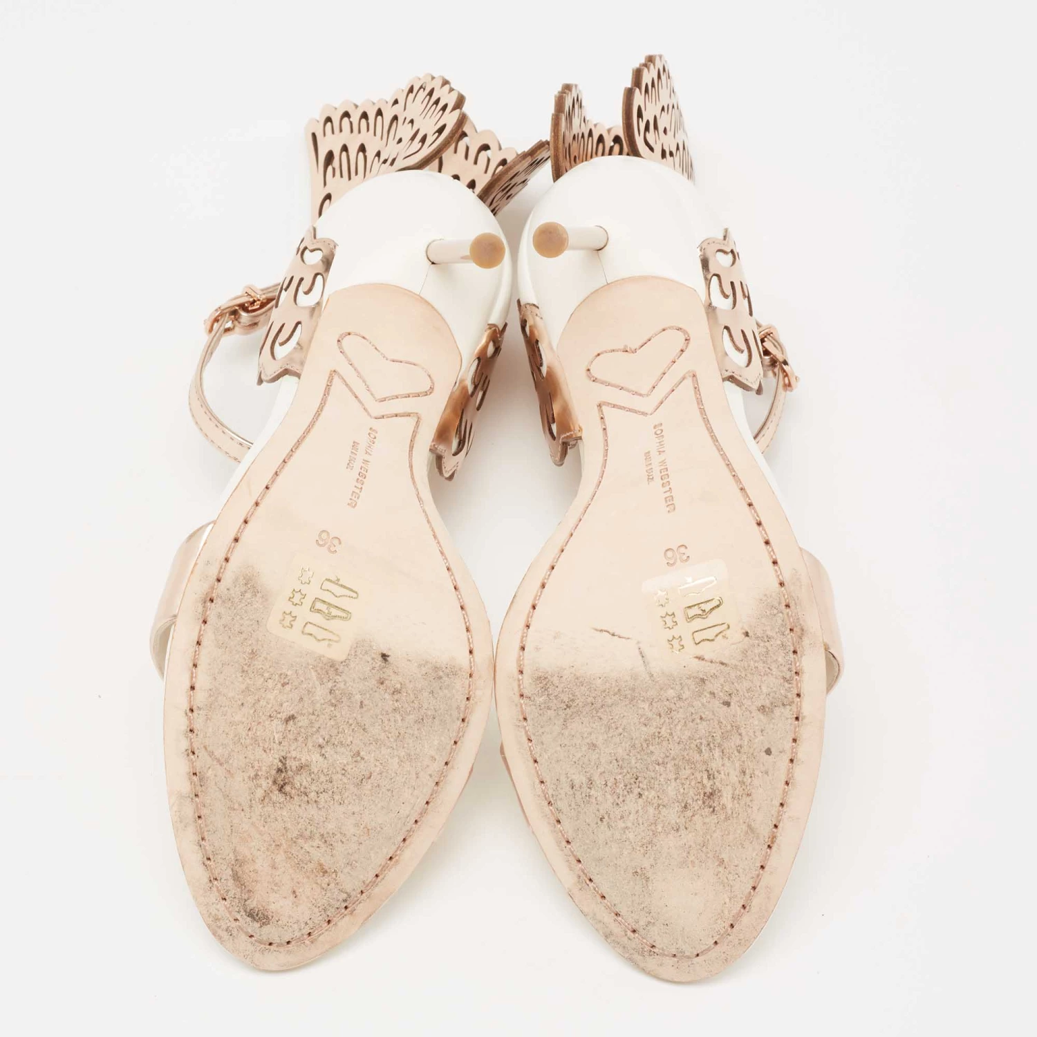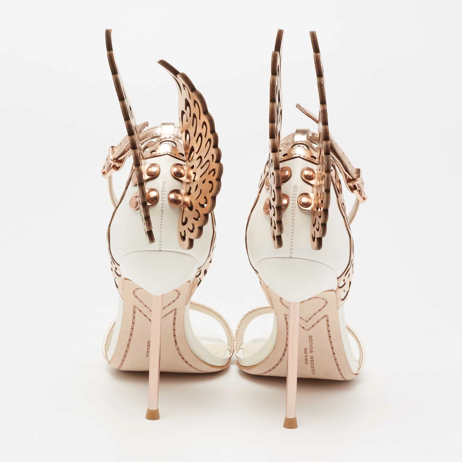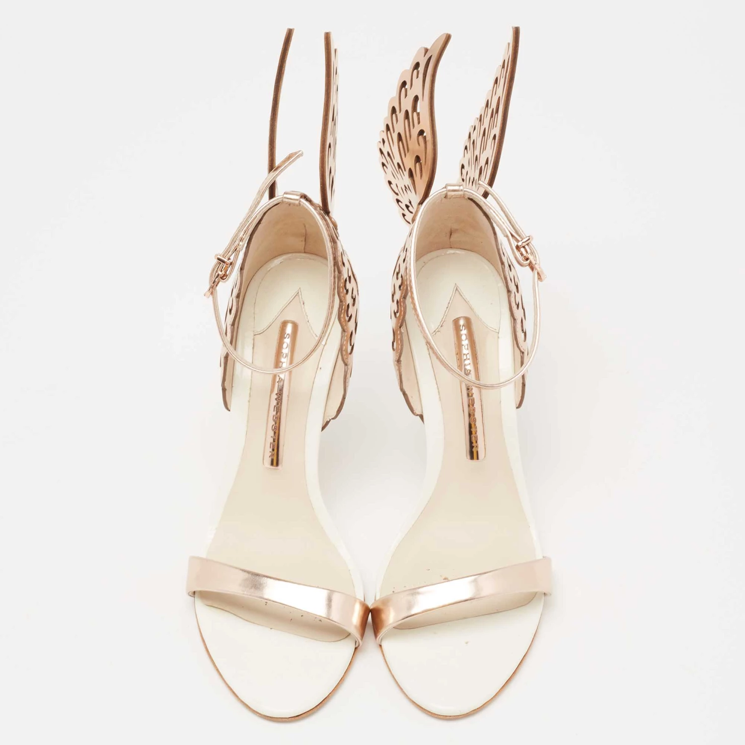 These Evangeline sandals from Sophia Webster are all about class and elegance! They are made from rose-gold and white leather and have open toes, super slim heels, and an ankle strap. They are adorned with rose gold-toned hardware. Flaunt your chic style with these sandals.