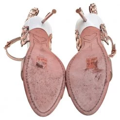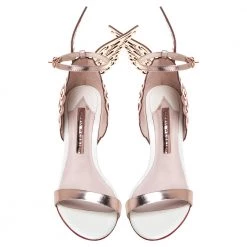 Sophia Webster has a flair for incorporating marvelous ideas with shoemaking, and maybe that’s why their designs are so coveted. These “Evangeline” sandals are simply unbelievable. They flaunt an exterior made from leather and are artistically designed with a single strap and breathtaking laser-cut wings emerging from the counters above the 10.5 cm heels.