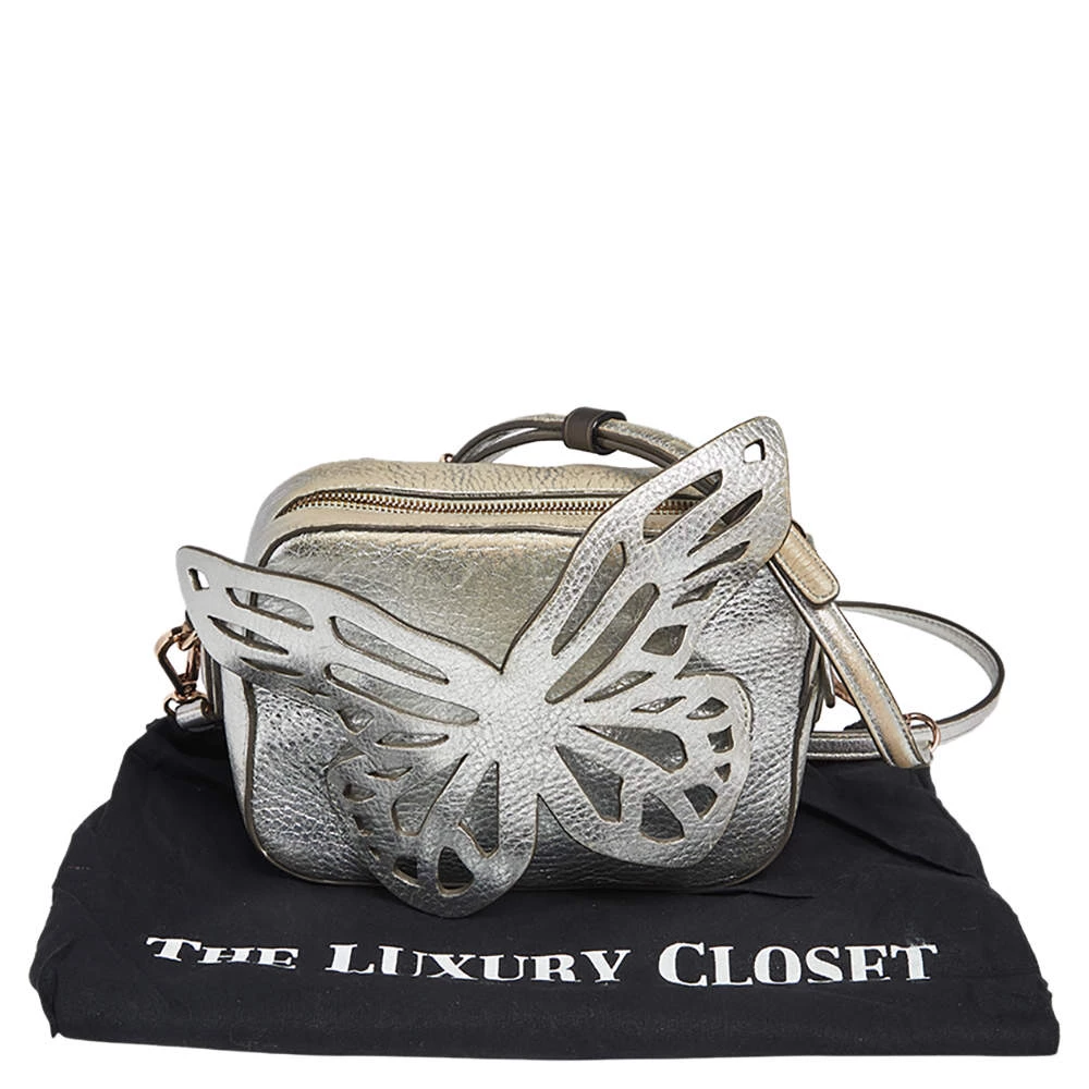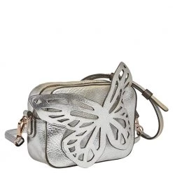 Designed to be durable, this camera crossbody bag from Sophia Webster is a prized buy. Comfortable and easy to carry, this leather creation comes in silver with a butterfly accent on the front. It has a shoulder strap and a lined interior to keep your essentials safe.