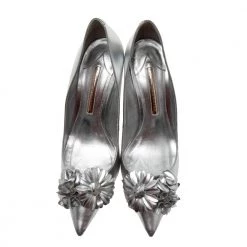 These pumps from Sophia Webster are just right on trend! They are crafted from silver-hued leather and designed with pointed toes and flower motifs on the uppers. This eye-catching pair is sure to have everyone in admiration.