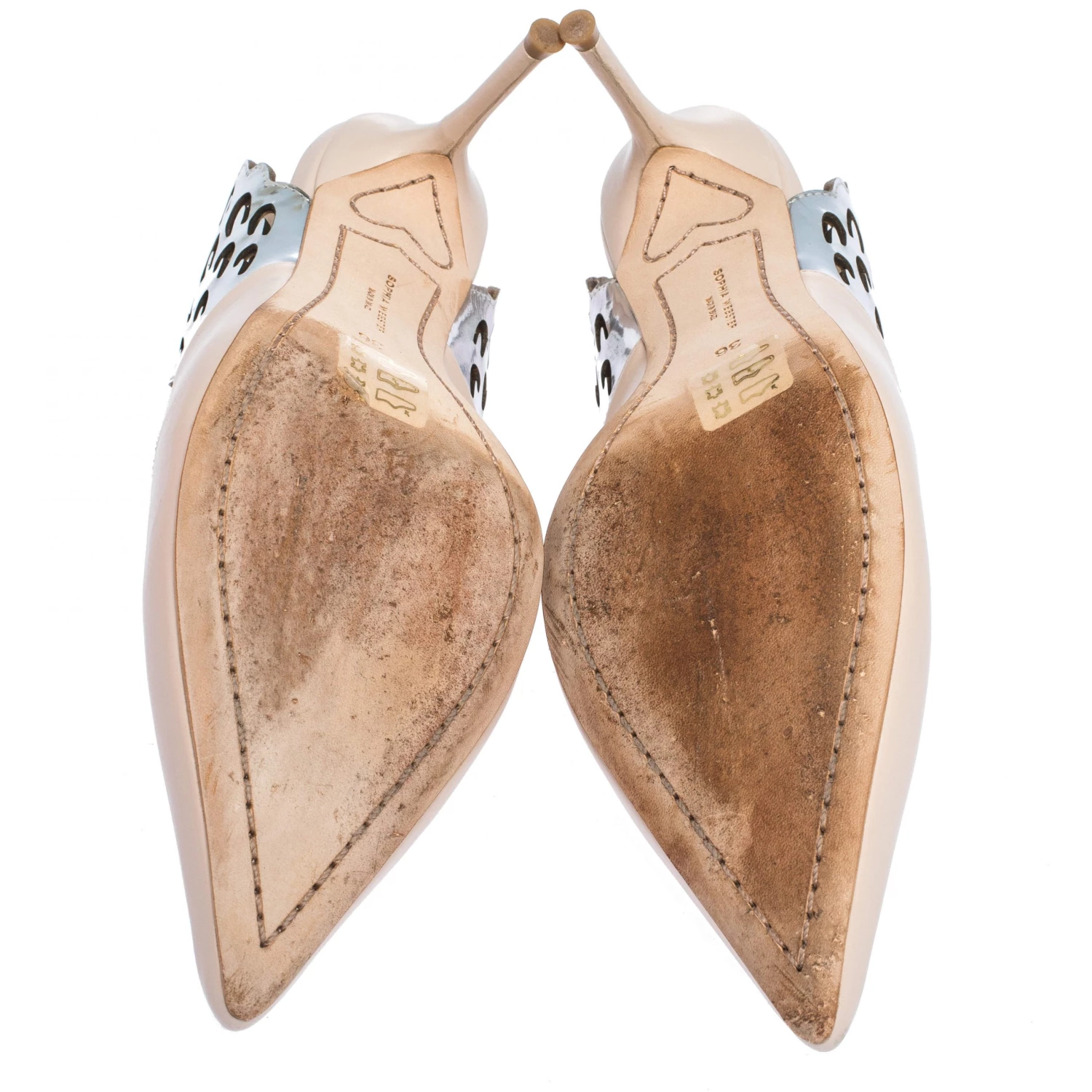 Sophia Webster charms us with these Angelo sandals that are crafted from quality leather in silver & nude hues. They flaunt pointed toes and slingbacks shaped as wings extending out beautifully. They come equipped with comfortable leather-lined insoles and 7.5 cm stiletto heels.