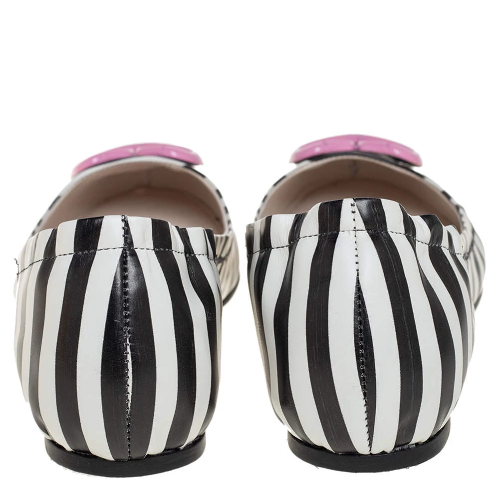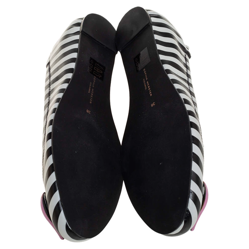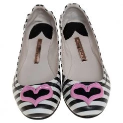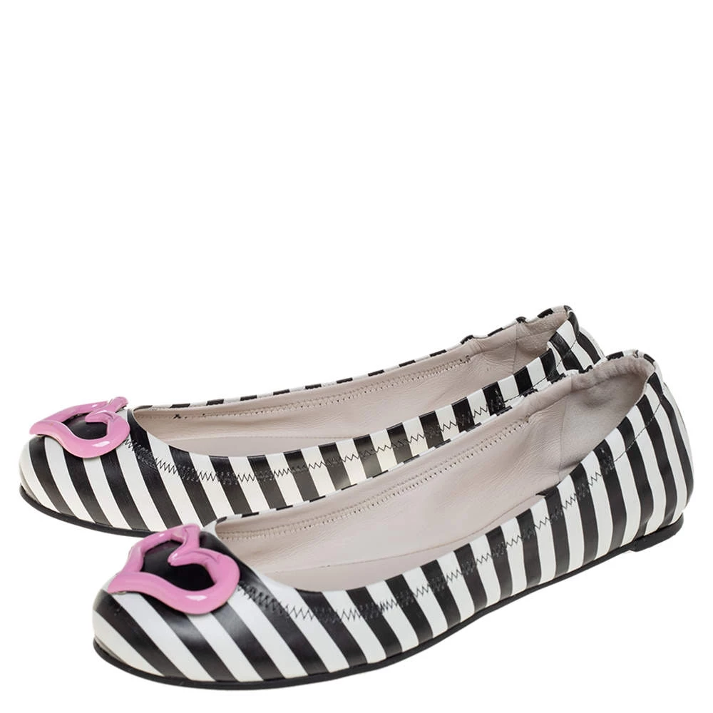 These Sophia Webster ballet flats are made from black and white leather. They are adorned with stripes and two flamingos kissing and forming a heart shape on the uppers. Wear them with your cute dresses for a chic appeal.