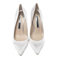 Comfort coupled with fashion creates wonders and these pumps from Sophia Webster are a true example of that. These white ivory pumps are crafted from satin and feature pointed toes. They stand tall on crystal-embellished 11.5 cm heels and come endowed with leather-lined insoles.