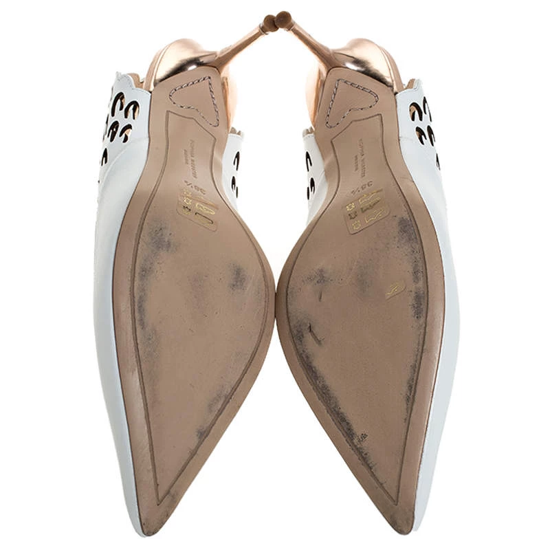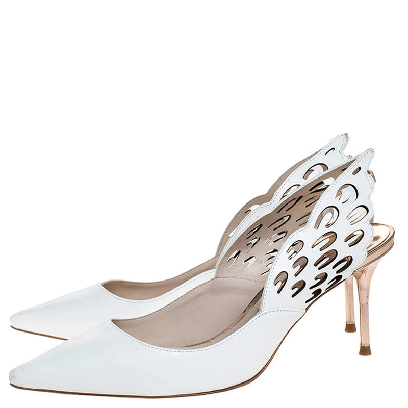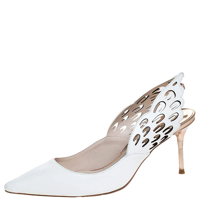 Sophia Webster charms us with these sandals that are crafted from metallic leather. They flaunt pointed toes and slingbacks shaped as wings extending out beautifully. They come equipped with comfortable leather-lined insoles and 8 cm stiletto heels.