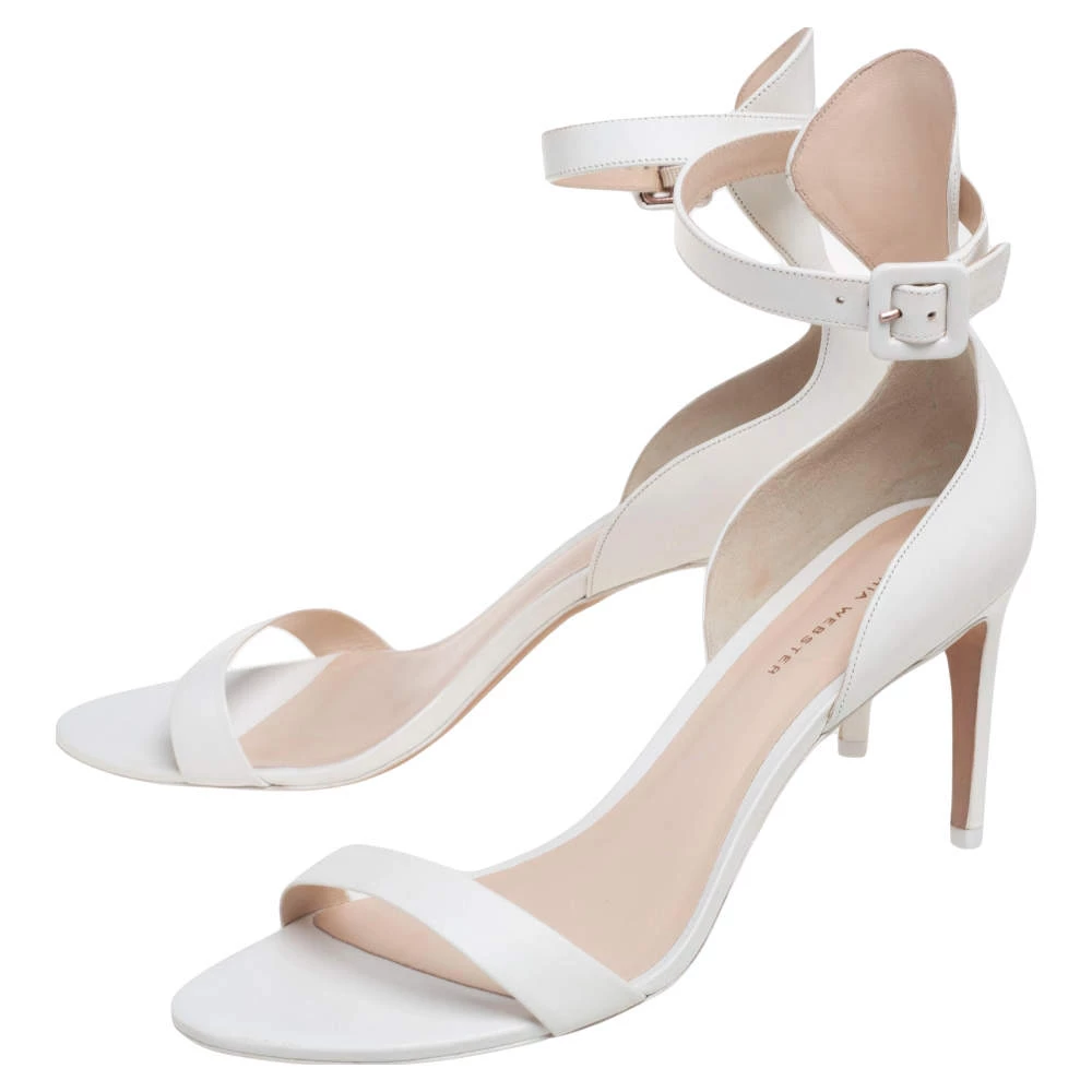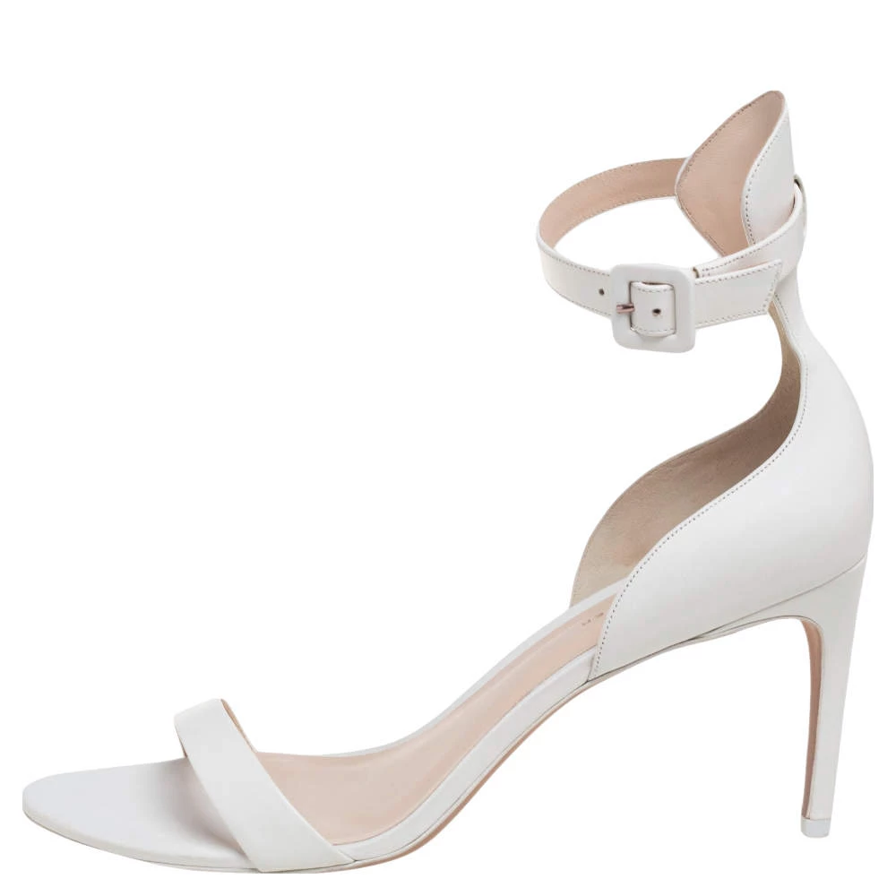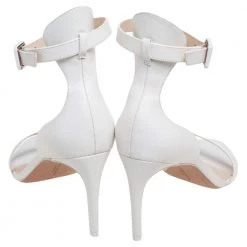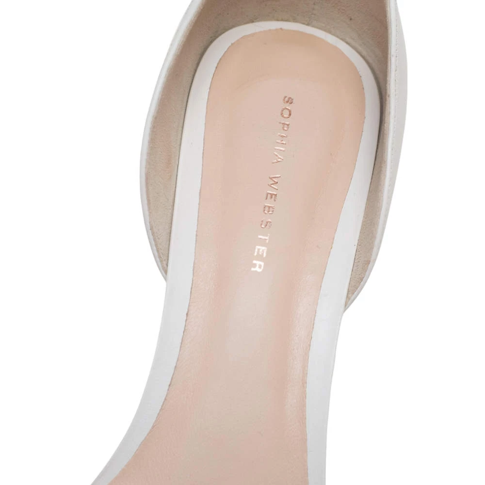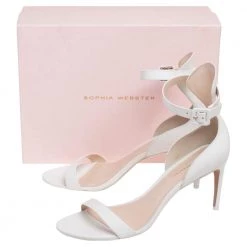 These sandals from Sophia Webster strike a perfect balance between elegance and class. They are designed using white leather on the exterior with open-toes, an ankle strap, shapely counters, and heels completing their structure. They are adorned with rose-gold-toned hardware.