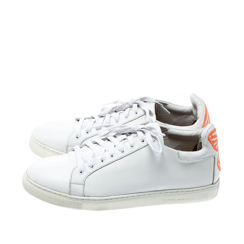 Known for her whimsical designs, Sophia Webster is a name known well with shoe lovers. These Bibi sneakers are crafted from white leather and designed with round toes and beautiful butterfly detailing on the counters. The shoes are leather-lined on the insoles to ensure long-lasting comfort.