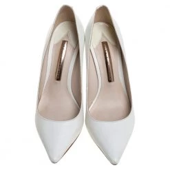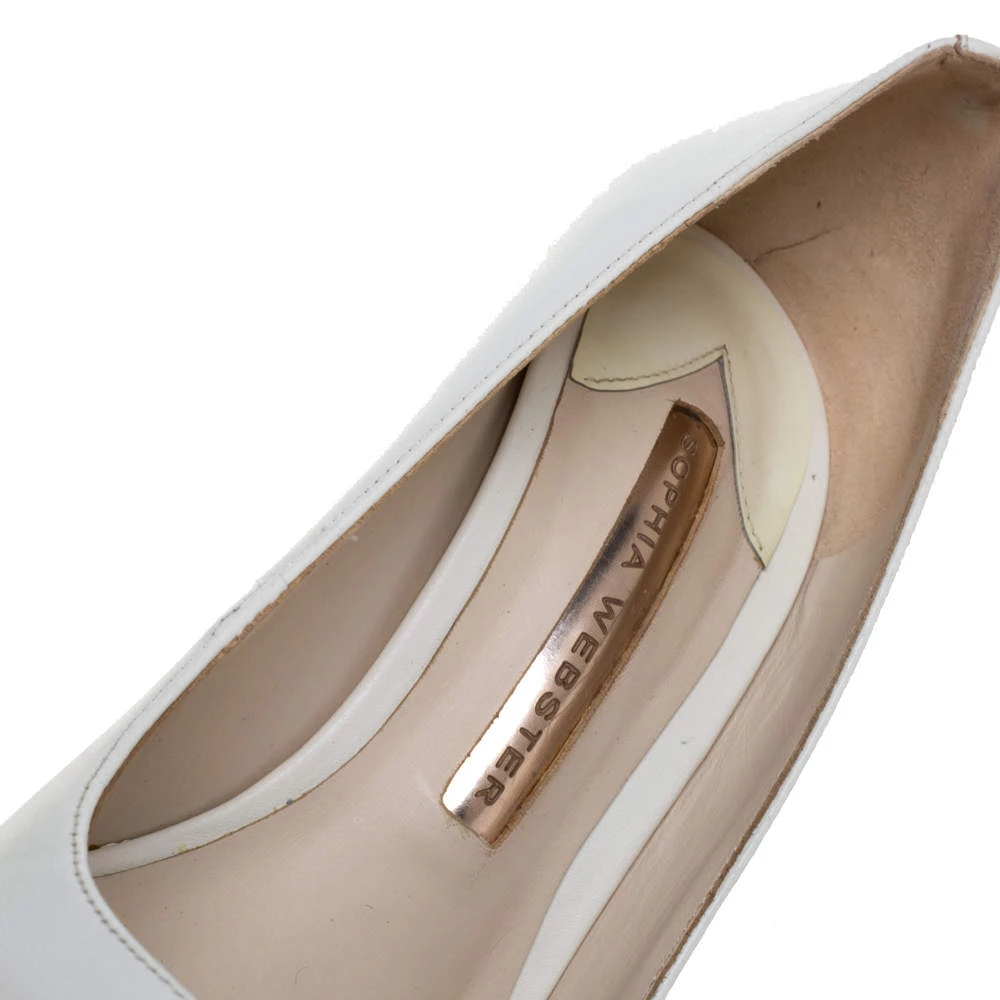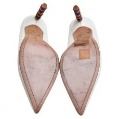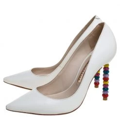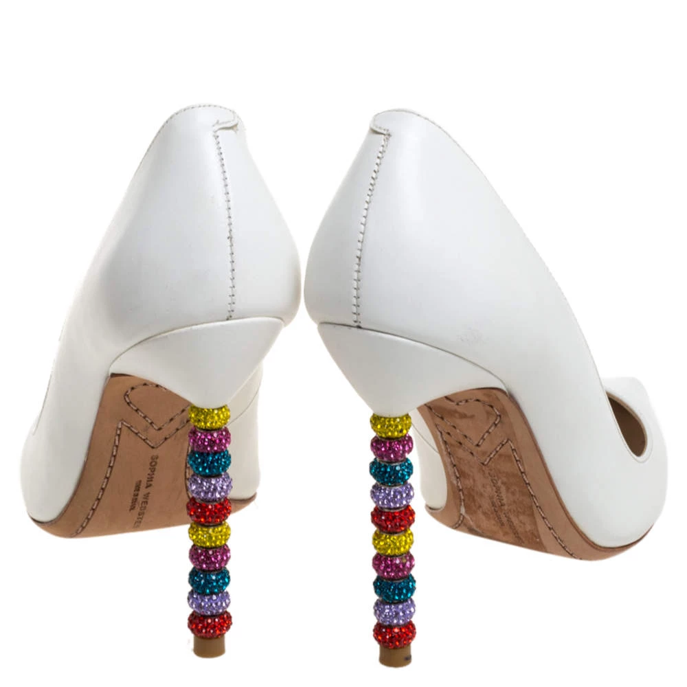 Pick this gorgeous pair of pumps and flaunt your style. This pair from the house of Sophia Webster is made from white leather and feature pointed toes, leather insoles, and 10.5 cm heels decorated with colorful crystal rings. Have a striking day out in these!
