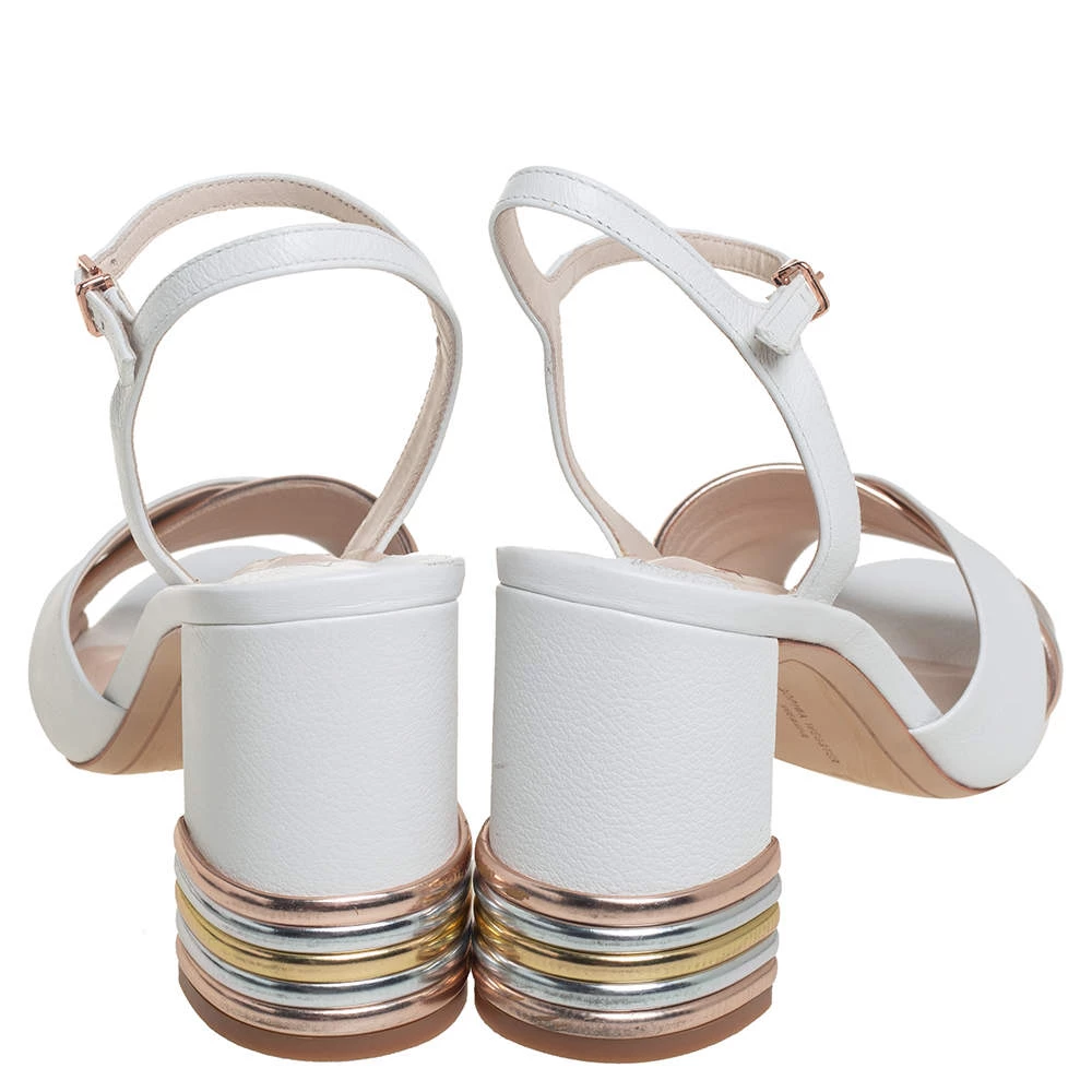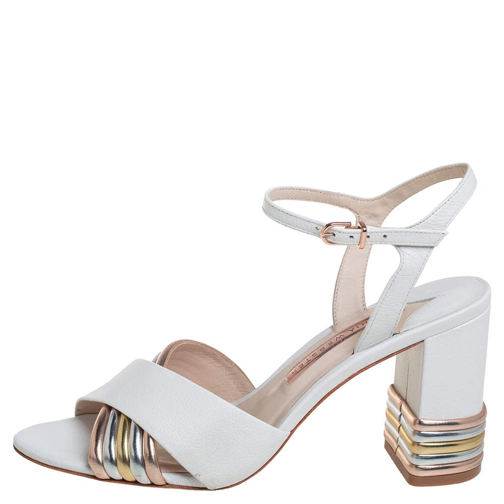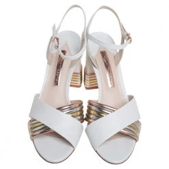 There’s nothing we don’t love about these gorgeous Joy sandals from Sophia Webster! The lovely sandals are crafted from leather in hues of white, silver, yellow gold, and rose gold. They feature open toes, ankle straps with buckle closures, and 8 cm block heels.