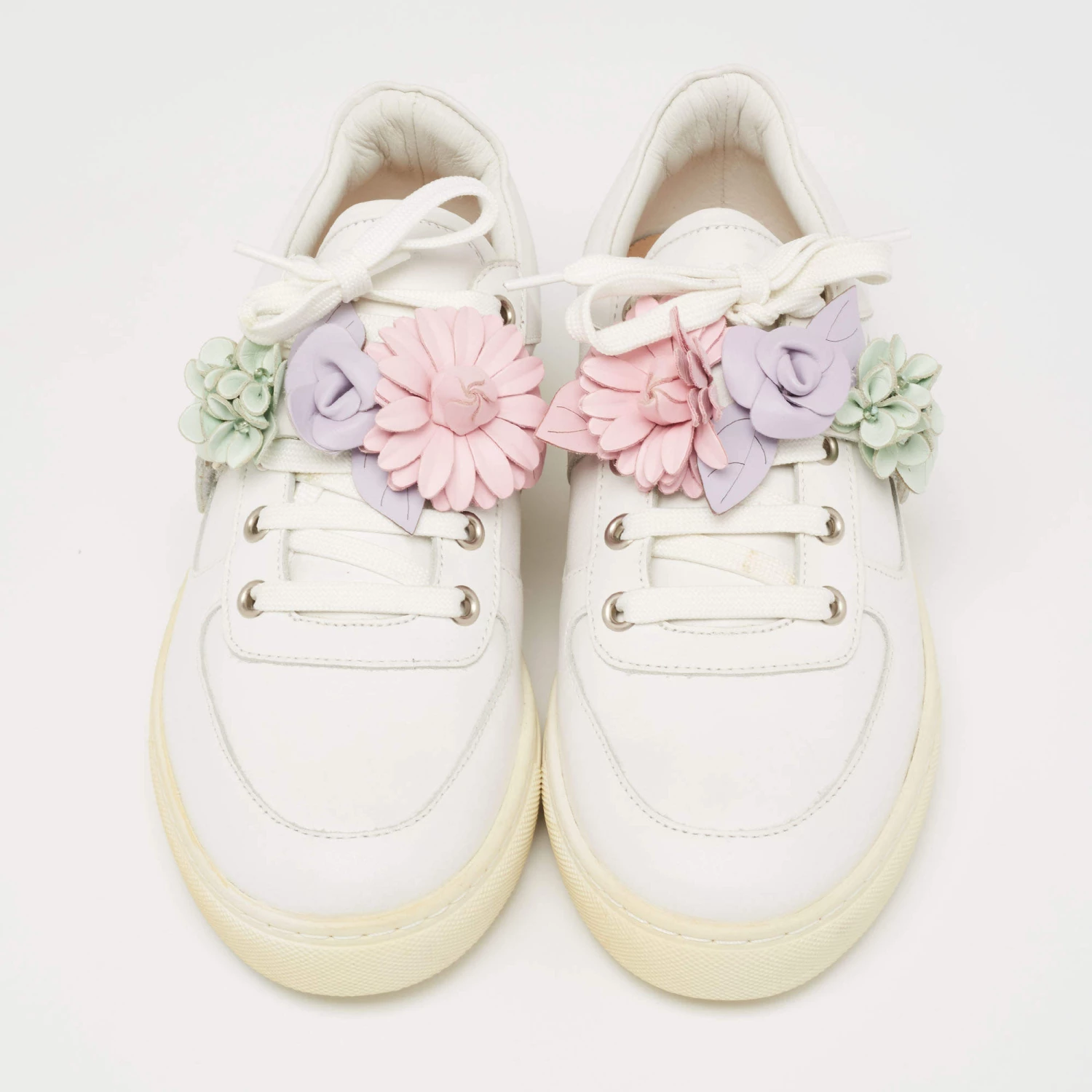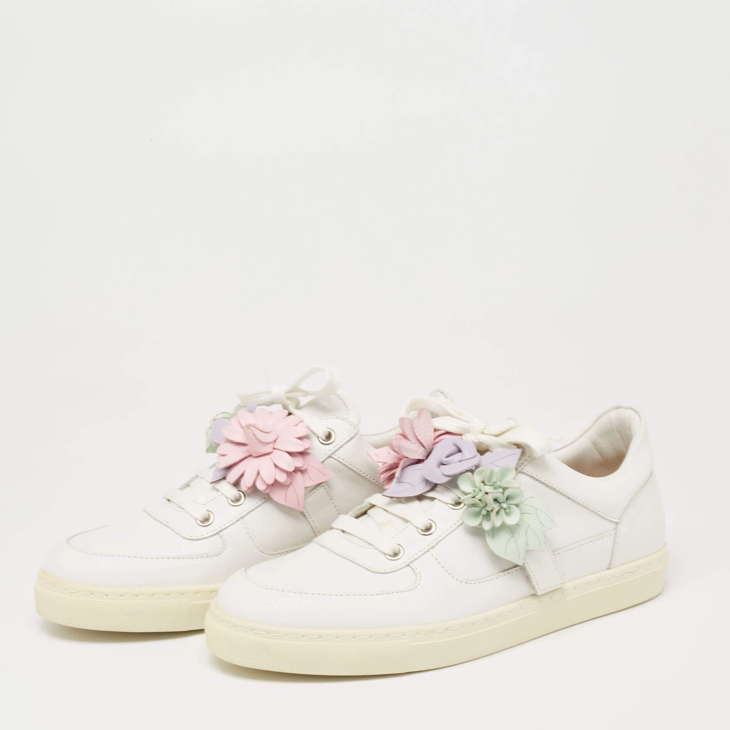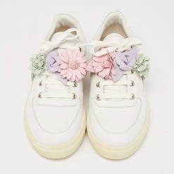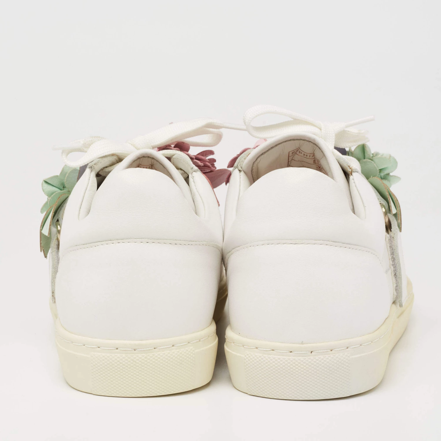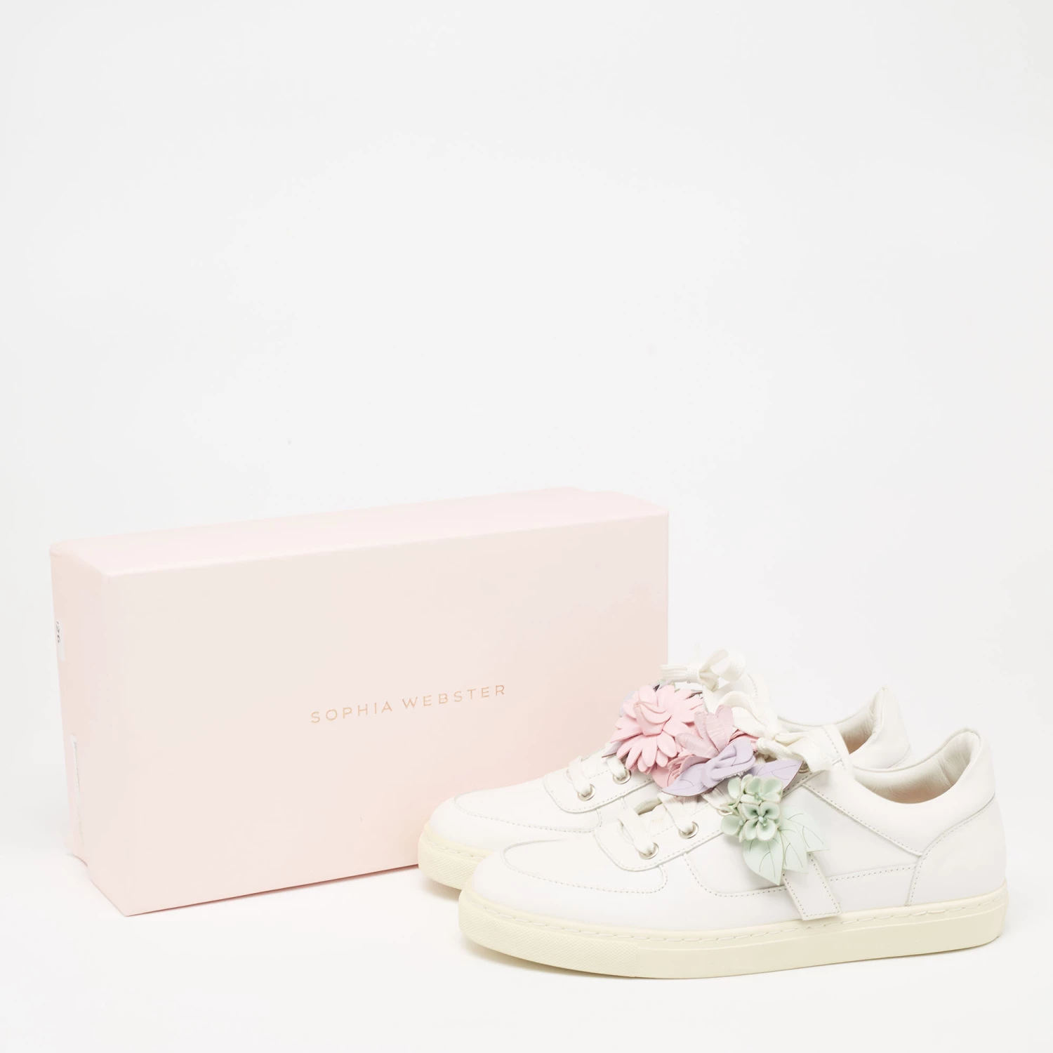 Sophia Webster has been a favorite worldwide for her unique, creative, and modern designs. She continues to charm us with these fabulous Lilico sneakers. These white sneakers are crafted from leather and feature round toes, and multicolored floral appliques on the vamps. They come equipped with comfortable insoles and tough soles.