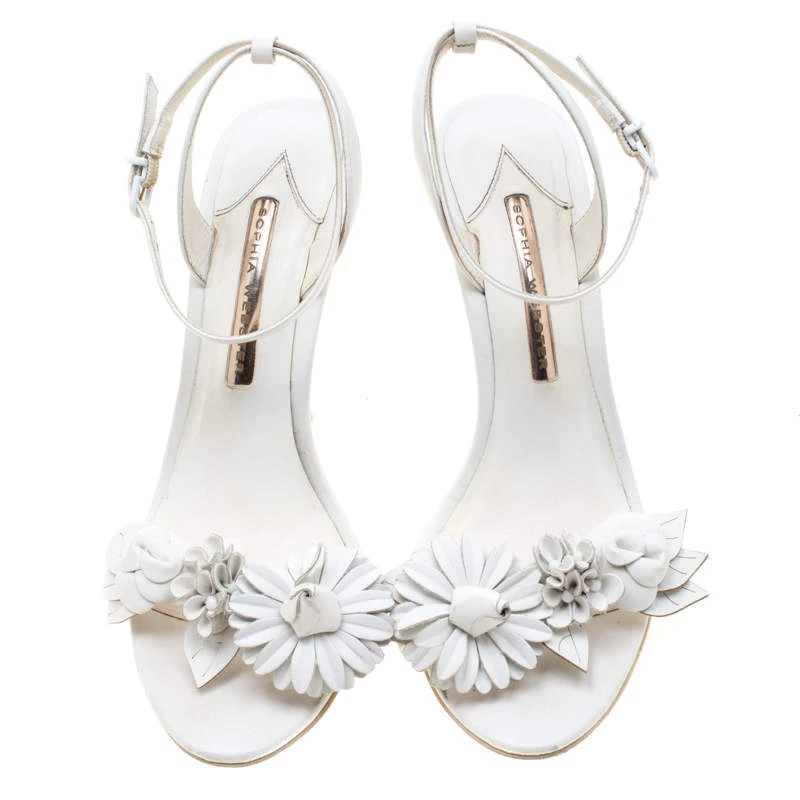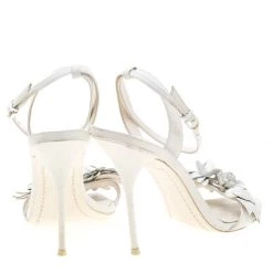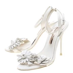 Embellished with a floral detail and featuring an ankle strap design, this pair of sandals is the perfect to enhance your look of the day. It has been designed from sleek leather in a white shade with six inch heels that impart a hint of exotic style.