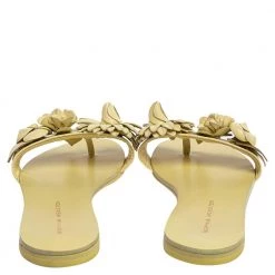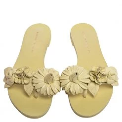 Nothing like a fabulous pair of slides to brighten up your outfit! These Sophia Webster slides are leather-made, and they carry a yellow hue. But what makes them so desirable are the beautiful floral motifs on the uppers. This is definitely one pair that simply speaks beauty.